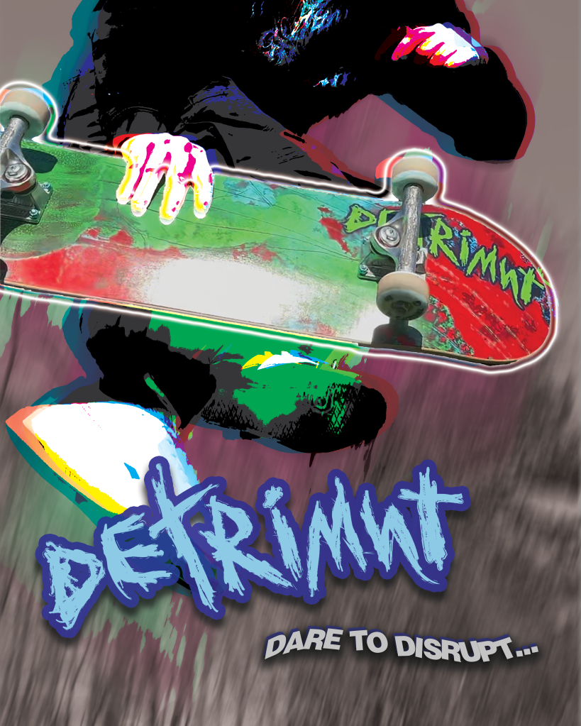 DETRIMNT is a skateboard brand I created as my senior graphic design thesis project. This brand features eight unique skateboard designs in addition to stickers and poster designs.